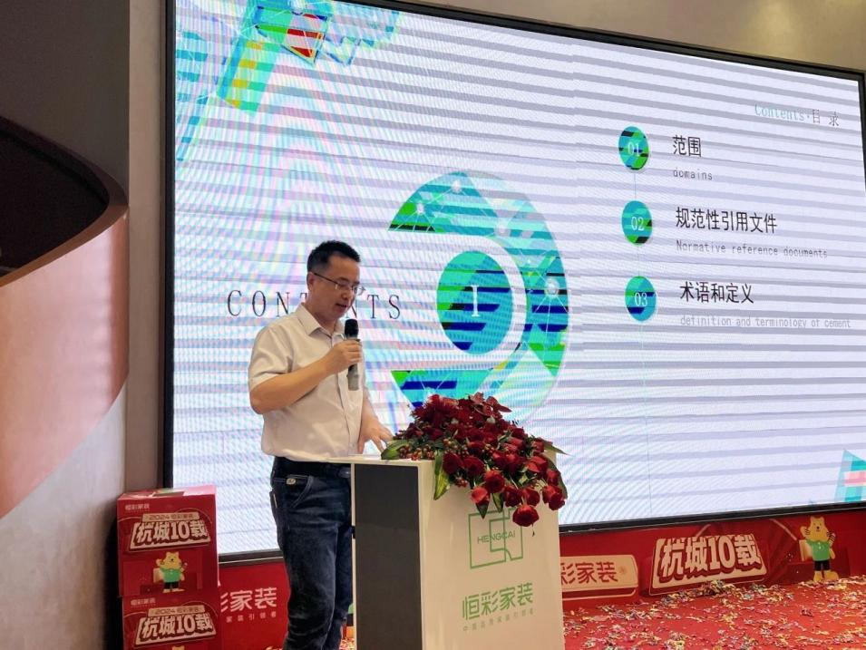 浙江省建筑裝飾行業(yè)協(xié)會秘書長吳建挺宣講《家庭居室裝飾裝修服務規(guī)范》。