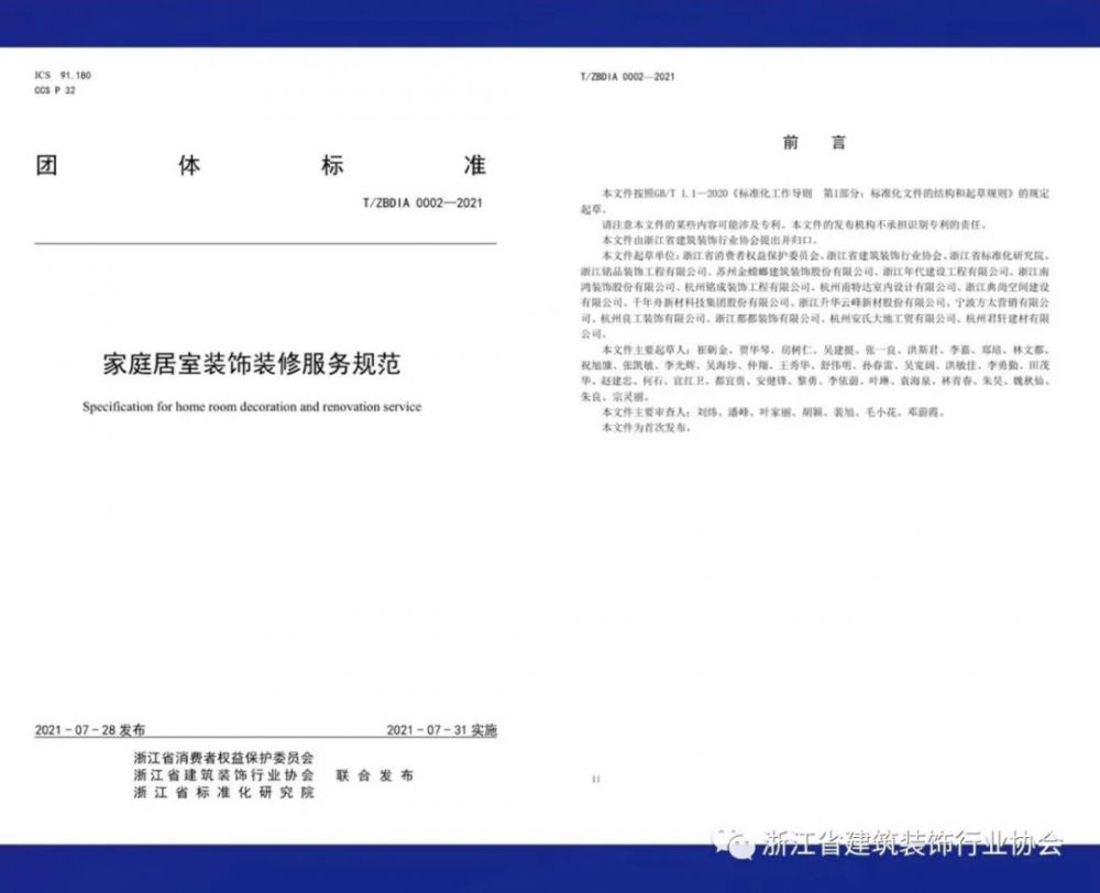 團體標準《家庭居室裝飾裝修服務(wù)規(guī)范》T/ZBDIA 0002—2021在今日首次發(fā)布