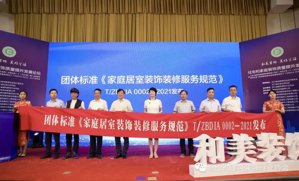 7月31日,團體標準《家庭居室裝飾裝修服務(wù)規(guī)范》T/ZBDIA 0002—2021首次發(fā)布會在杭州召開。發(fā)布會指導(dǎo)單位為浙江省消費者權(quán)益保護委員會、浙江省標準化研究院,主辦單位為浙江省建筑裝飾行業(yè)協(xié)會,由德華兔寶寶家居公司承辦。浙江省建筑裝飾行業(yè)協(xié)會原會長惲稚榮,浙江省標準化研究院院長陳自力,浙江省建筑裝飾行業(yè)協(xié)會會長賈華琴,典尚、光合機構(gòu)創(chuàng)始人陳耀光院長,浙江省建筑裝飾行業(yè)協(xié)會秘書長吳建挺,團體標準主要起草單位代表、家居建材骨干企業(yè)相關(guān)負責(zé)人參加會議。