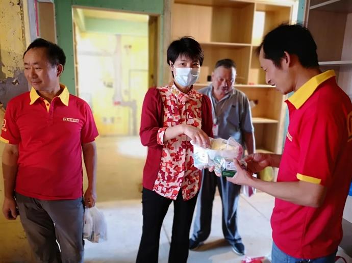 “天氣熱了,一定要注意身體。”“大家辛苦了,要注意做好防暑降溫工作……”,在南鴻裝飾東方郡項(xiàng)目一派熱火朝天的景象,工人們正在加緊施工。賈華琴會長走上前去為工人們送上防暑降溫慰問品,并仔細(xì)詢問項(xiàng)目建設(shè)進(jìn)度和工人們的工作、生活情況。她囑咐項(xiàng)目管理人員高溫天氣施工一定要做好防暑工作,合理安排作業(yè)時間,確保工程進(jìn)度,又好又快地推進(jìn)項(xiàng)目建設(shè)。