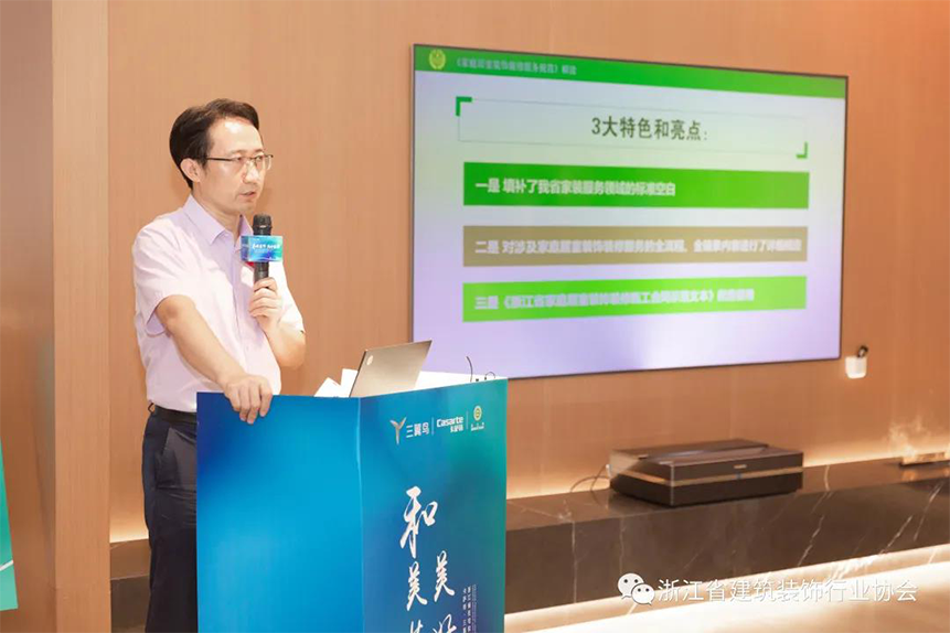 崔礪金秘書長指出,省內(nèi)首部《家庭居室裝飾裝修服務(wù)規(guī)范》的團(tuán)體標(biāo)準(zhǔn)出臺(tái)很及時(shí)、也很必要,具有3大特色和亮點(diǎn):一是首次以標(biāo)準(zhǔn)的形式對(duì)家裝企業(yè)如何做好家庭居室裝飾裝修服務(wù)進(jìn)行了規(guī)范,填補(bǔ)了我省家裝服務(wù)領(lǐng)域的標(biāo)準(zhǔn)空白;二是標(biāo)準(zhǔn)從消費(fèi)者角度出發(fā),針對(duì)家裝服務(wù)過程中消費(fèi)者碰到的痛點(diǎn)、難點(diǎn)問題,對(duì)涉及家庭居室裝飾裝修服務(wù)的全流程、全鏈條內(nèi)容進(jìn)行了詳細(xì)規(guī)定,有利于規(guī)范市場(chǎng),推進(jìn)我省建筑裝飾裝修行業(yè)的可持續(xù)、高質(zhì)量發(fā)展;三是標(biāo)準(zhǔn)發(fā)布后,與省市場(chǎng)監(jiān)督管理局、省消費(fèi)者權(quán)益保護(hù)委員會(huì)、省建筑裝飾行業(yè)協(xié)會(huì)共同發(fā)布的《浙江省家庭居室裝飾裝修施工合同示范文本》配套使用,對(duì)保護(hù)消費(fèi)者權(quán)益,構(gòu)筑透明、安全、健康的市場(chǎng)消費(fèi)環(huán)境,具有重要意義。