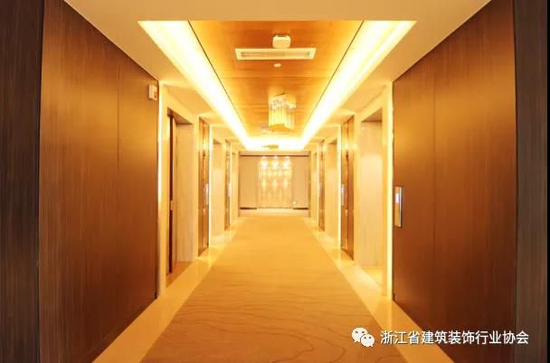 電梯廳延續(xù)了整體設(shè)計(jì)風(fēng)格,室內(nèi)細(xì)木工程涂刷均勻、粘接牢固,色澤豐韻;風(fēng)洞石石材墻面光潔平整,接縫嚴(yán)密,渾然一體;使人賞心悅目。