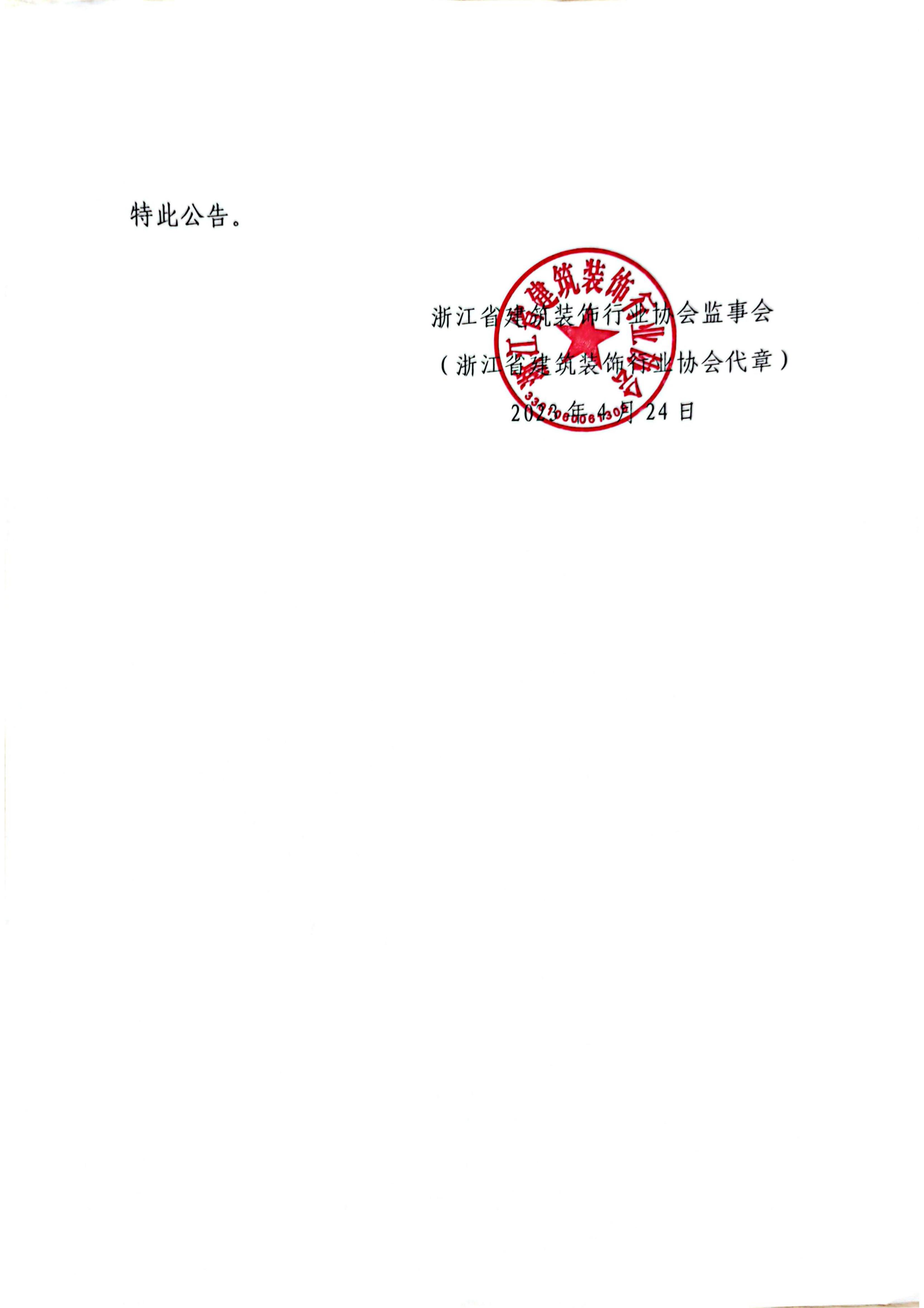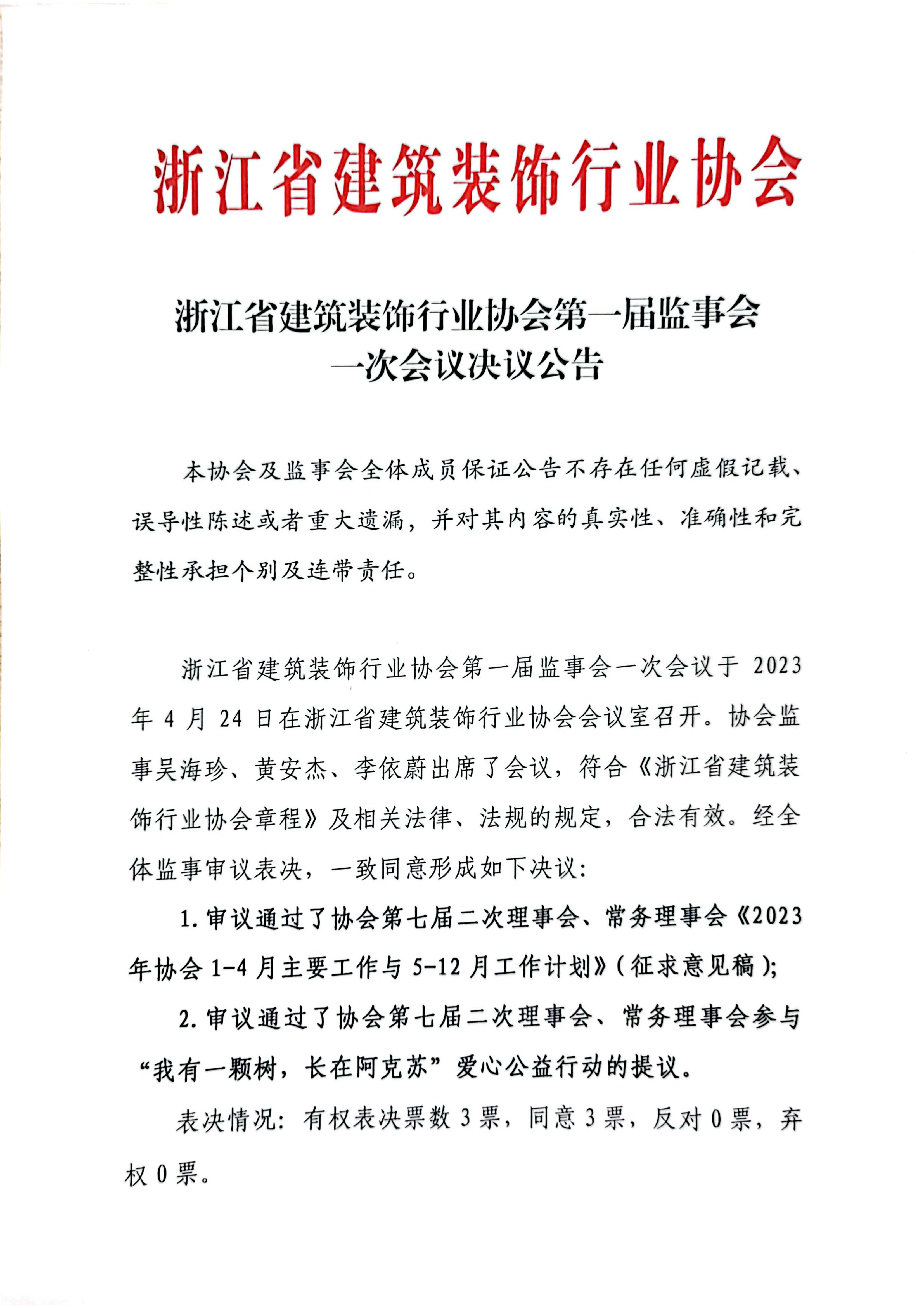 浙江省建筑裝飾行業(yè)協(xié)會第一屆監(jiān)事會一次會議決議公告
