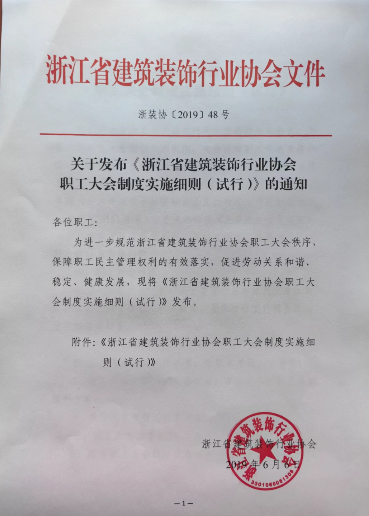 關(guān)于發(fā)布《浙江省建筑裝飾行業(yè)協(xié)會(huì)職工大會(huì)制度實(shí)施細(xì)則(試行)》的通知