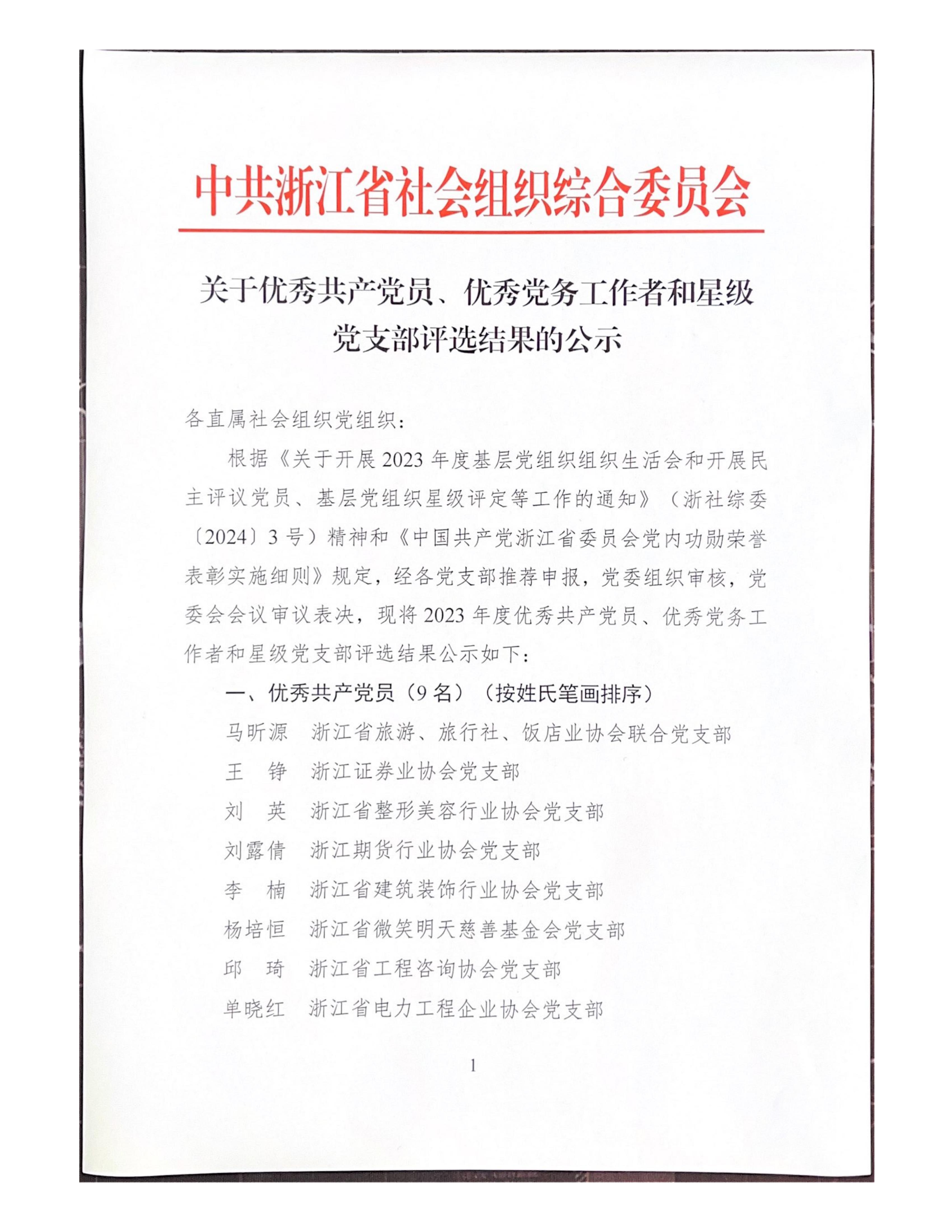 中共浙江省社會(huì)組織綜合委員會(huì)關(guān)于優(yōu)秀共產(chǎn)黨員、優(yōu)秀黨務(wù)工作者和星級(jí)黨支部評(píng)選結(jié)果的公示