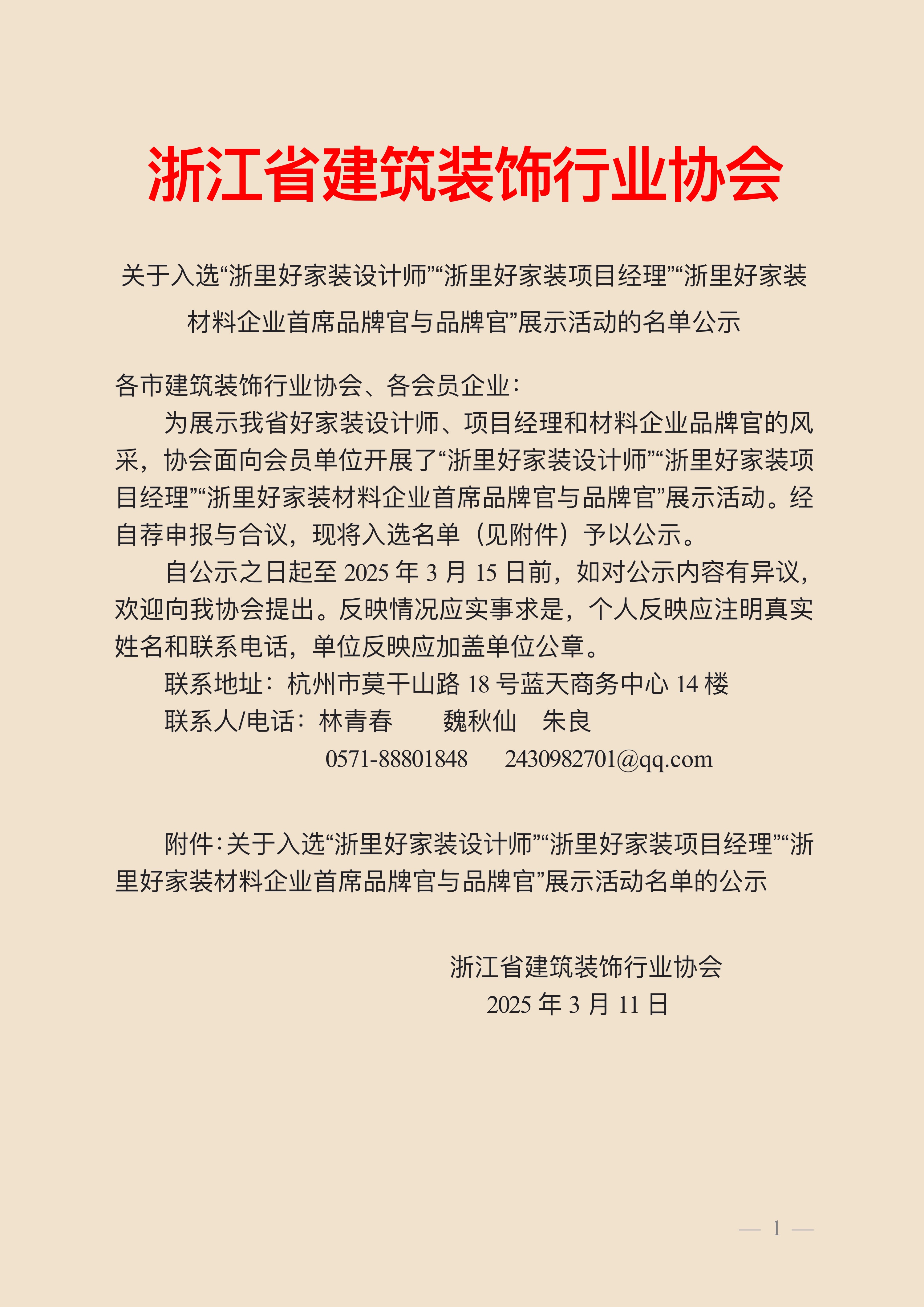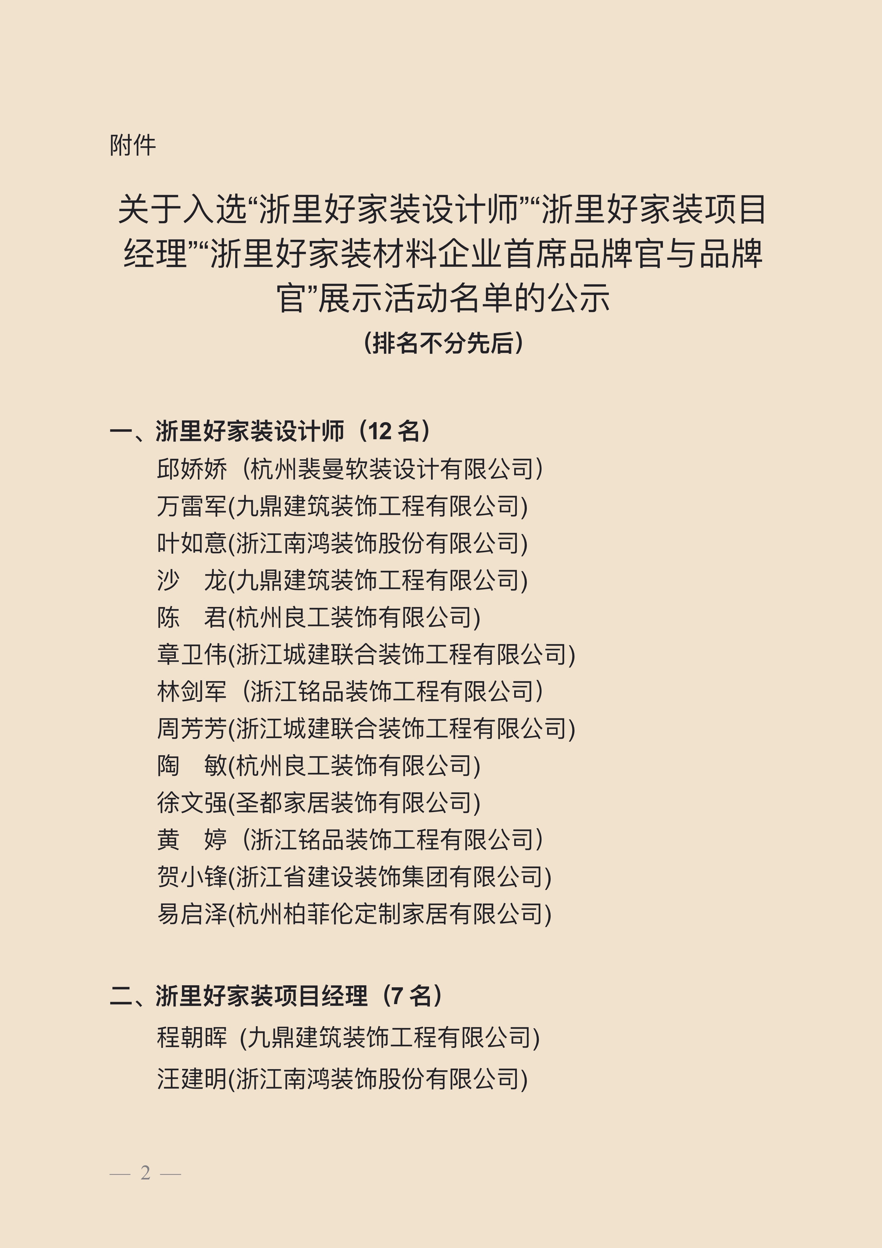 關(guān)于入選“浙里好家裝設(shè)計(jì)師”“浙里好家裝項(xiàng)目經(jīng)理”“浙里好家裝材料企業(yè)首席品牌官與品牌官”展示活動(dòng)的名單公示
