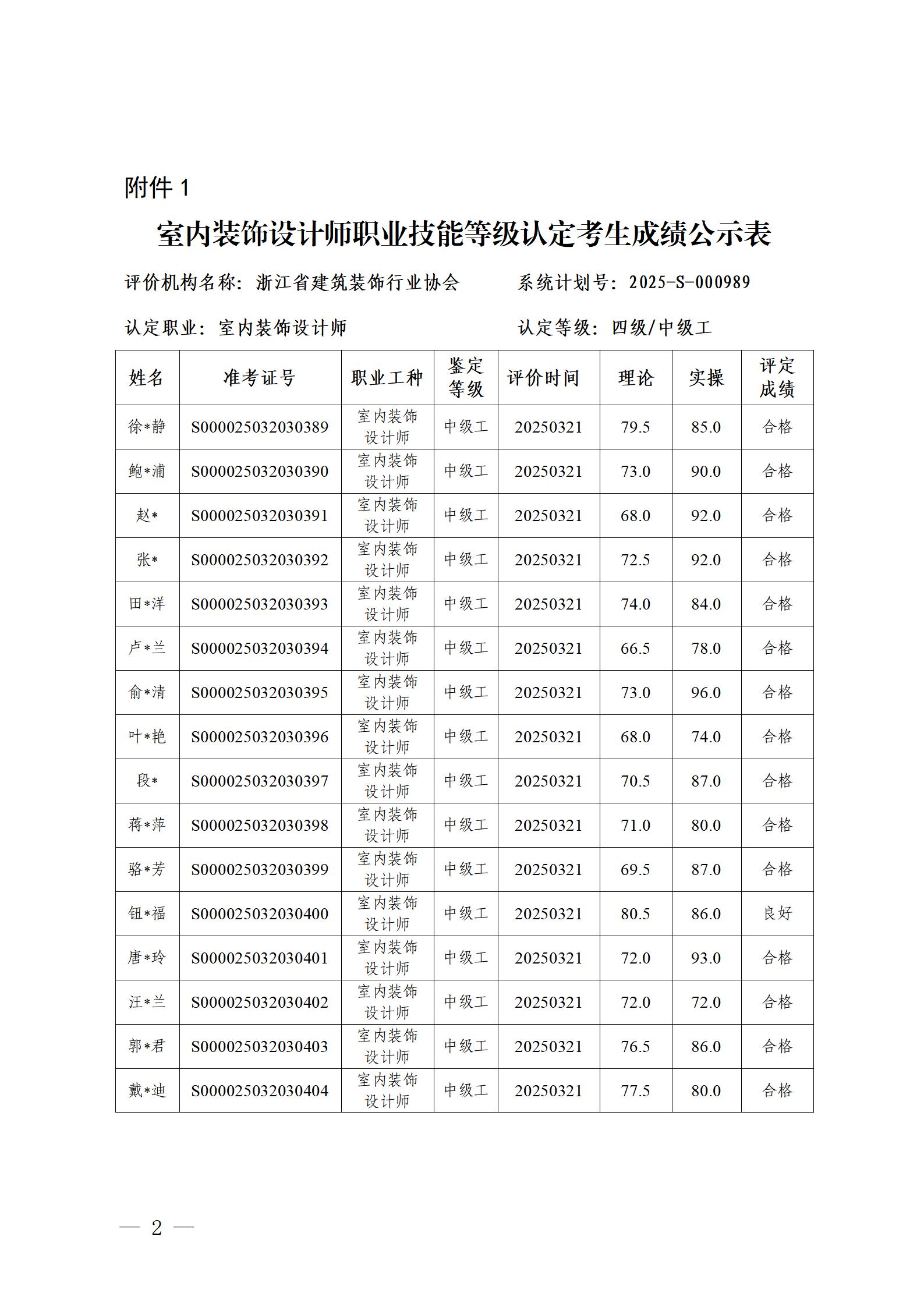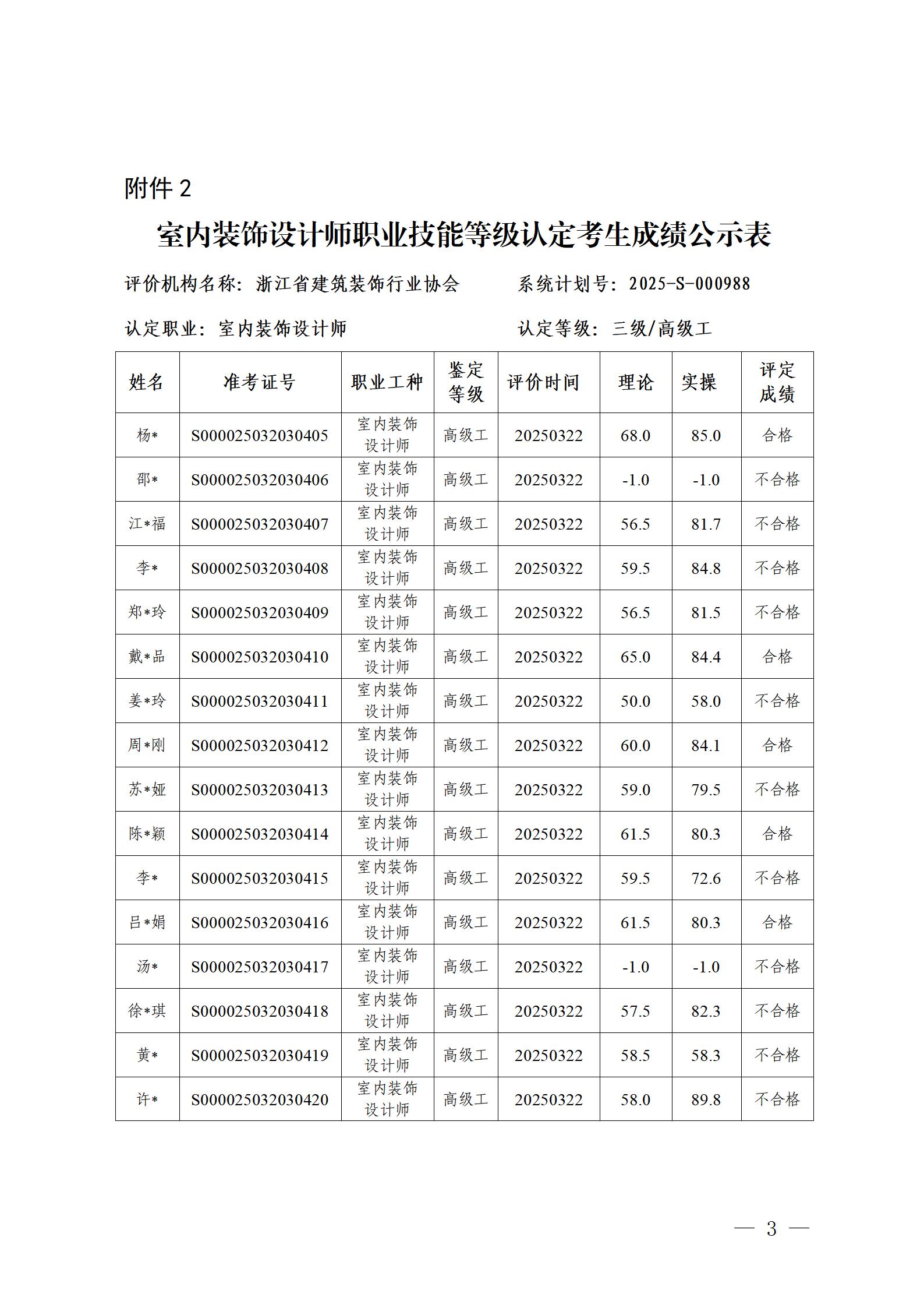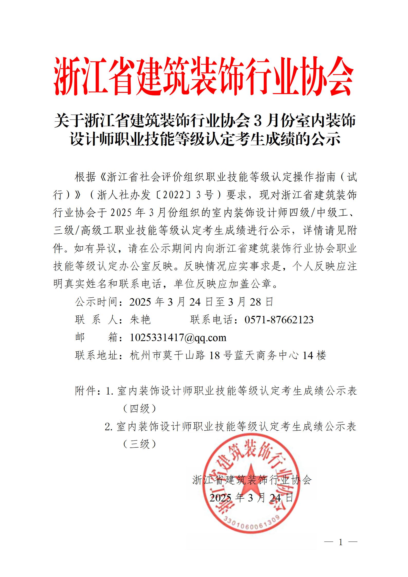 關(guān)于浙江省建筑裝飾行業(yè)協(xié)會3月份室內(nèi)裝飾設(shè)計師職業(yè)技能等級認(rèn)定考生成績的公示