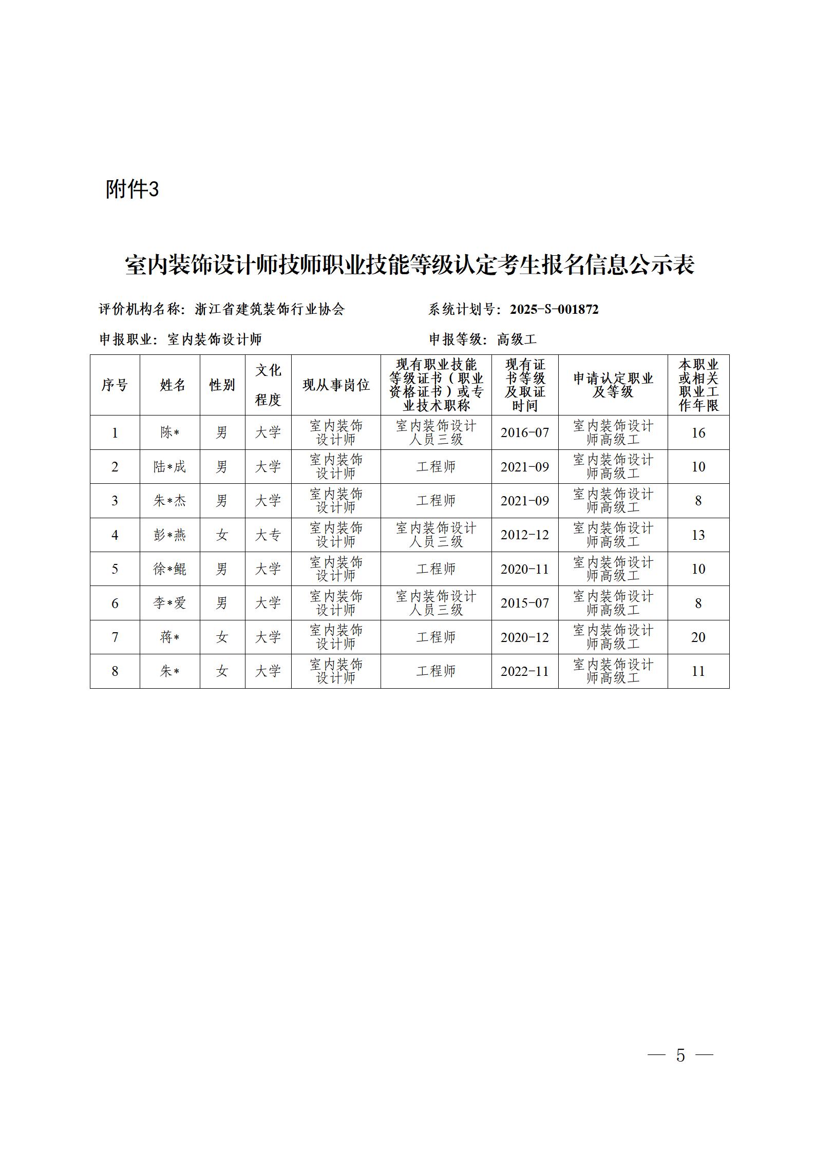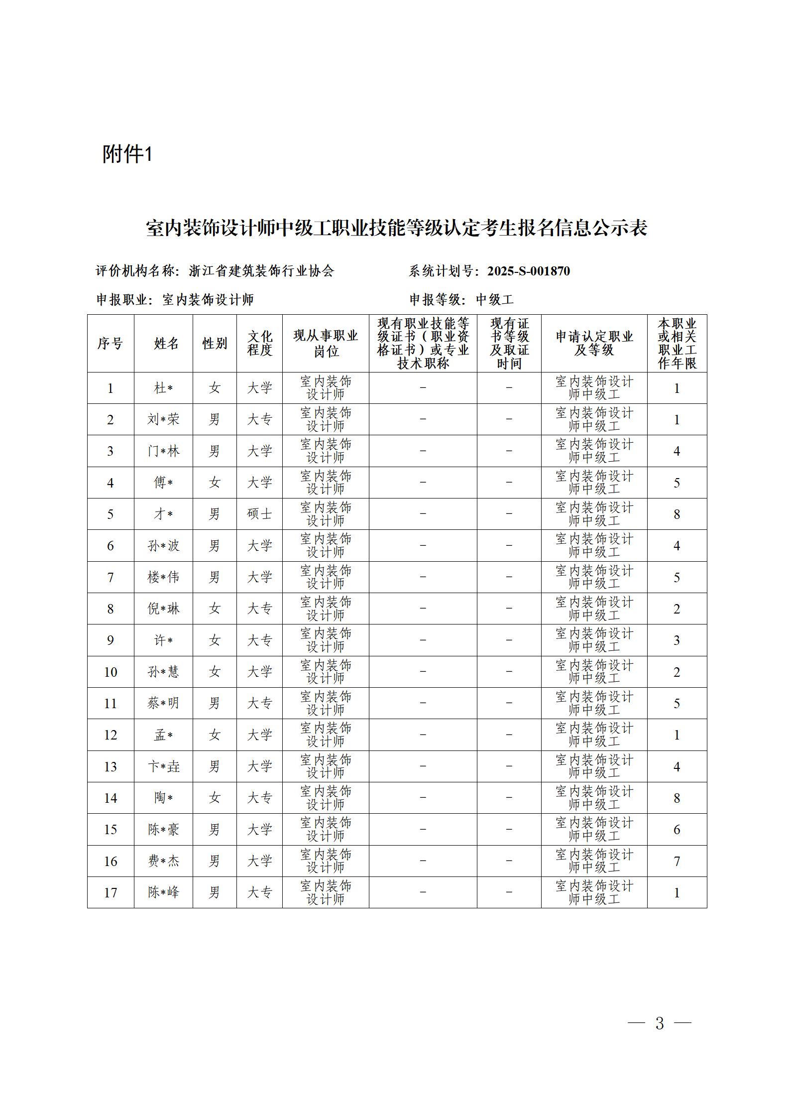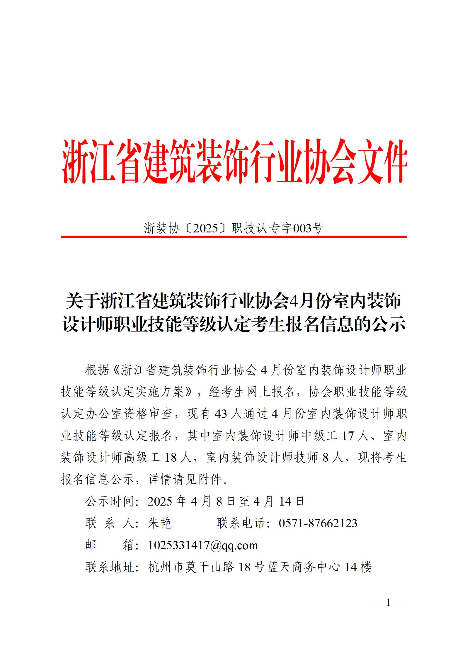 浙江省建筑裝飾行業(yè)協(xié)會4月份室內(nèi)裝飾設(shè)計(jì)師職業(yè)技能等級認(rèn)定考生報(bào)名信息公示