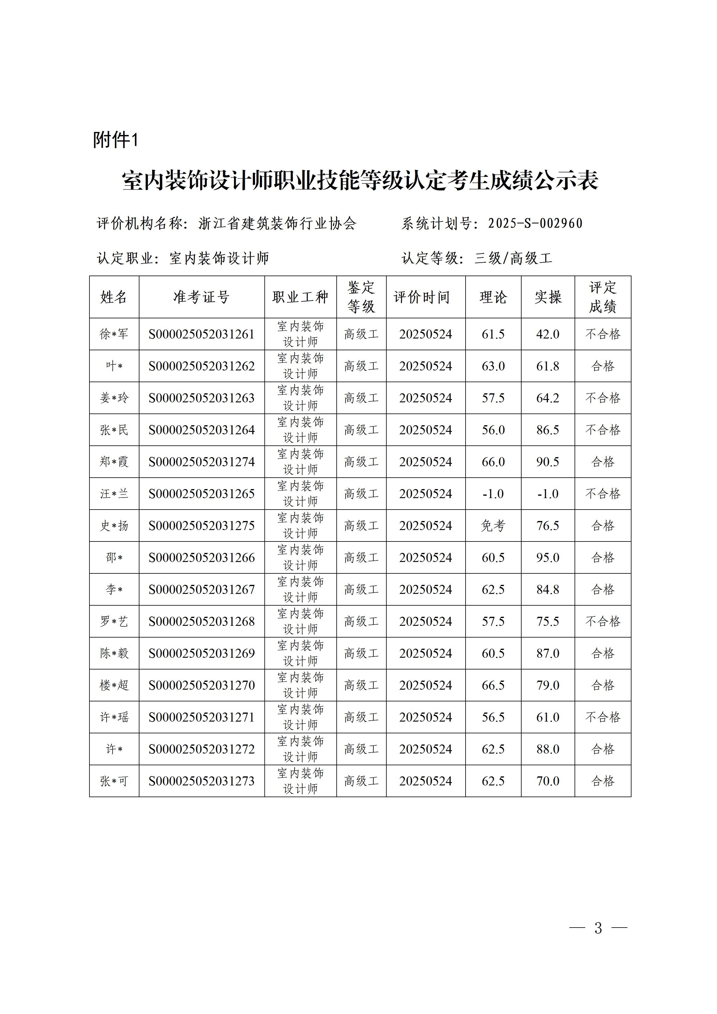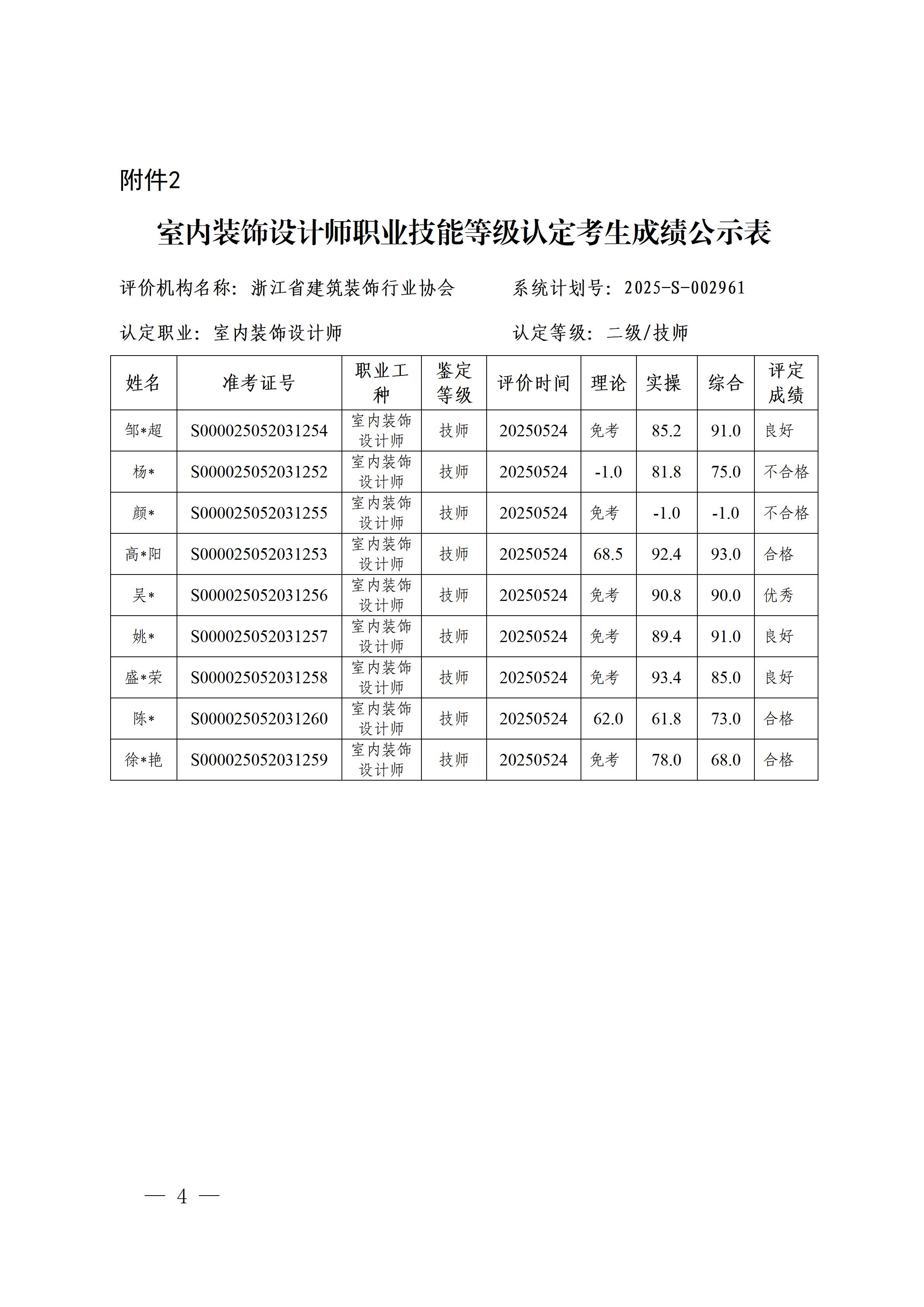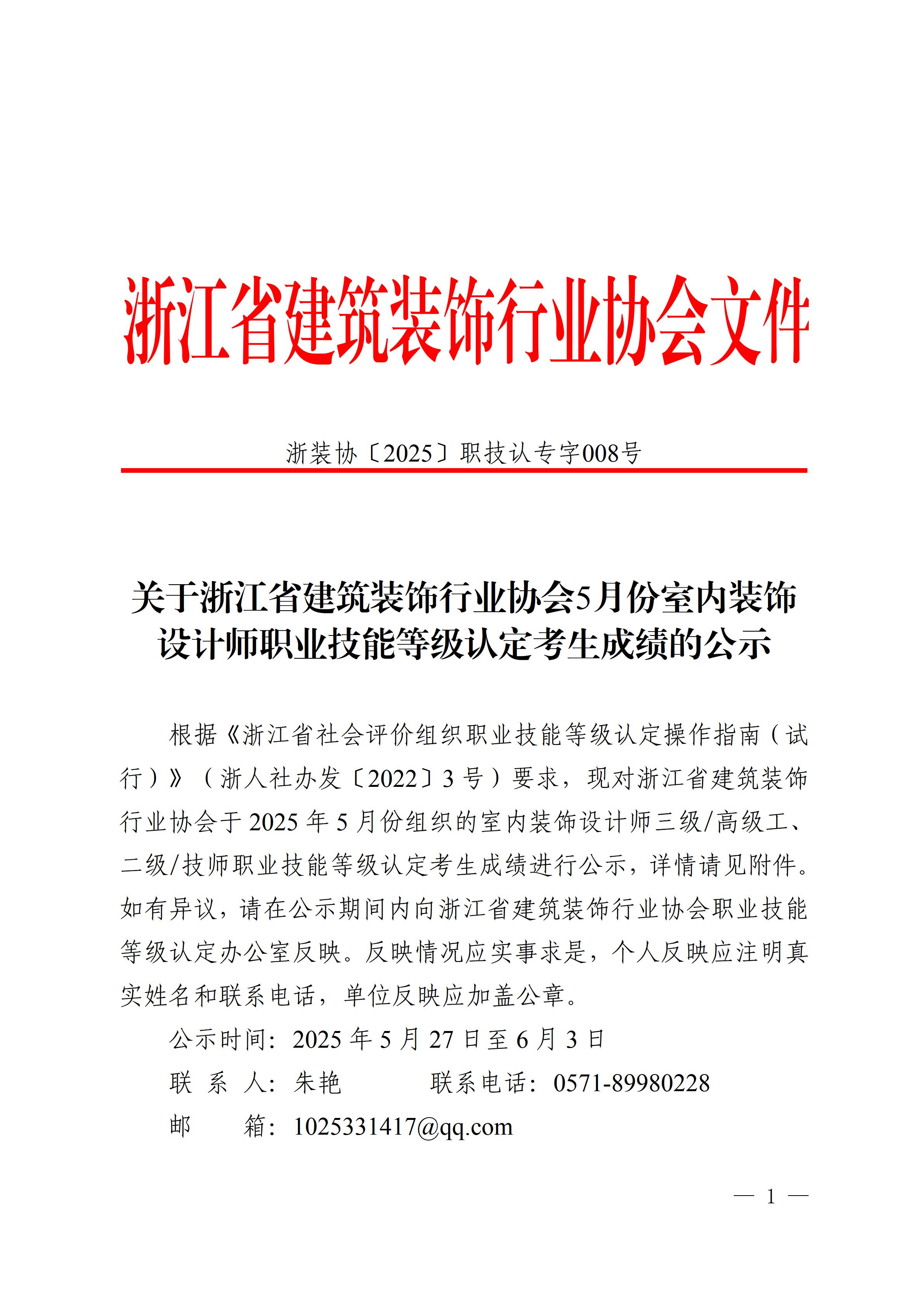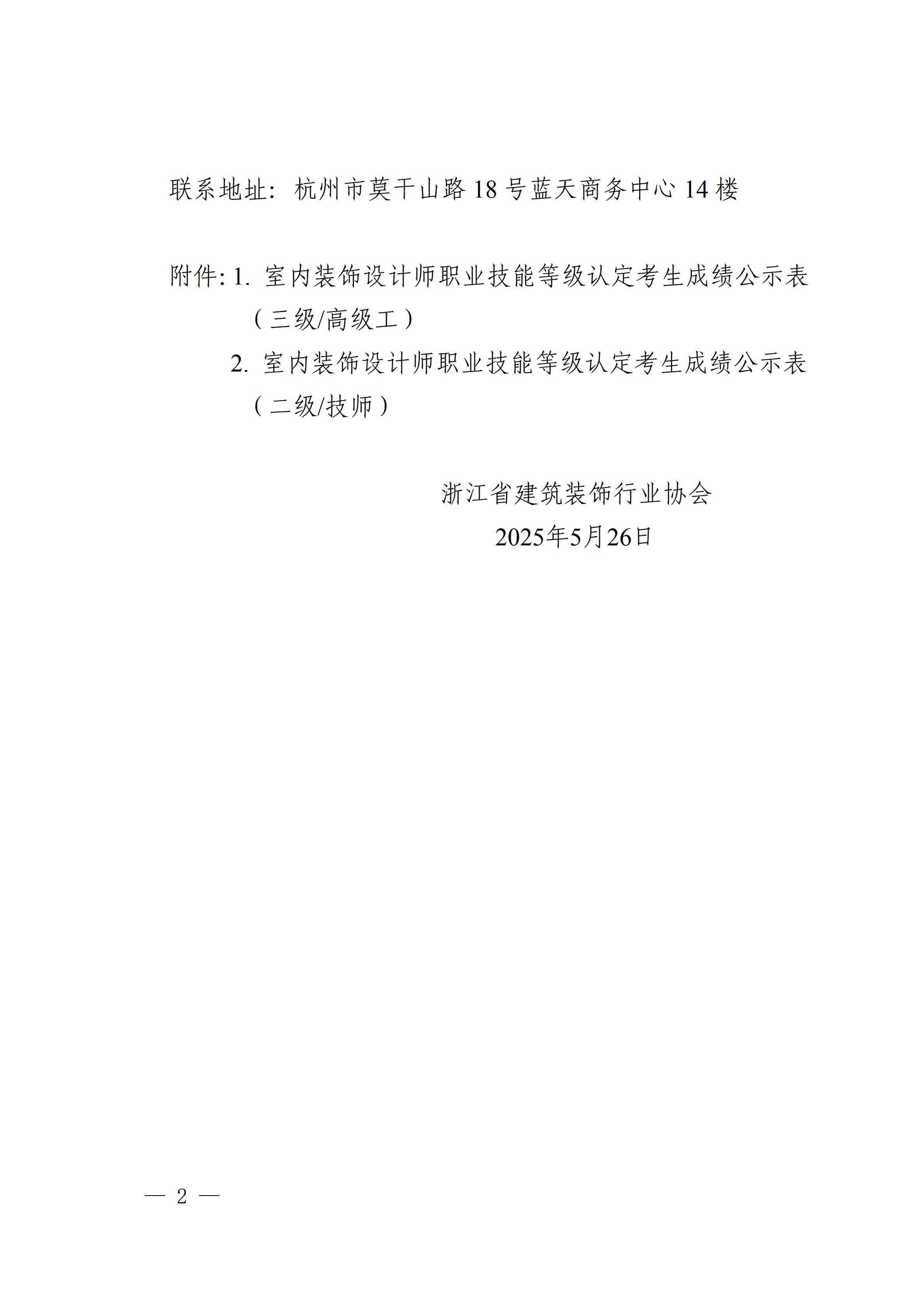 關(guān)于浙江省建筑裝飾行業(yè)協(xié)會(huì)5月份室內(nèi)裝飾設(shè)計(jì)師職業(yè)技能等級(jí)認(rèn)定考生成績(jī)的公示