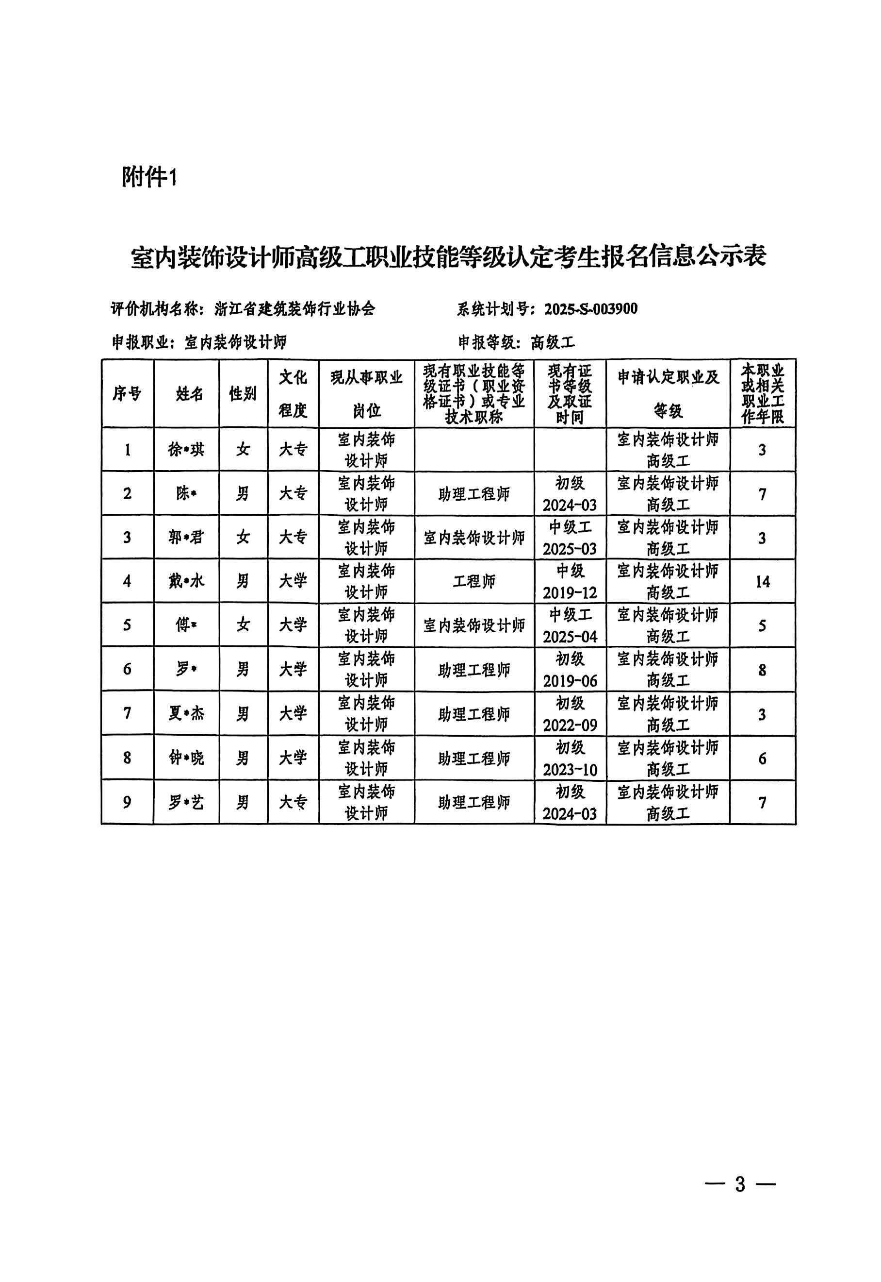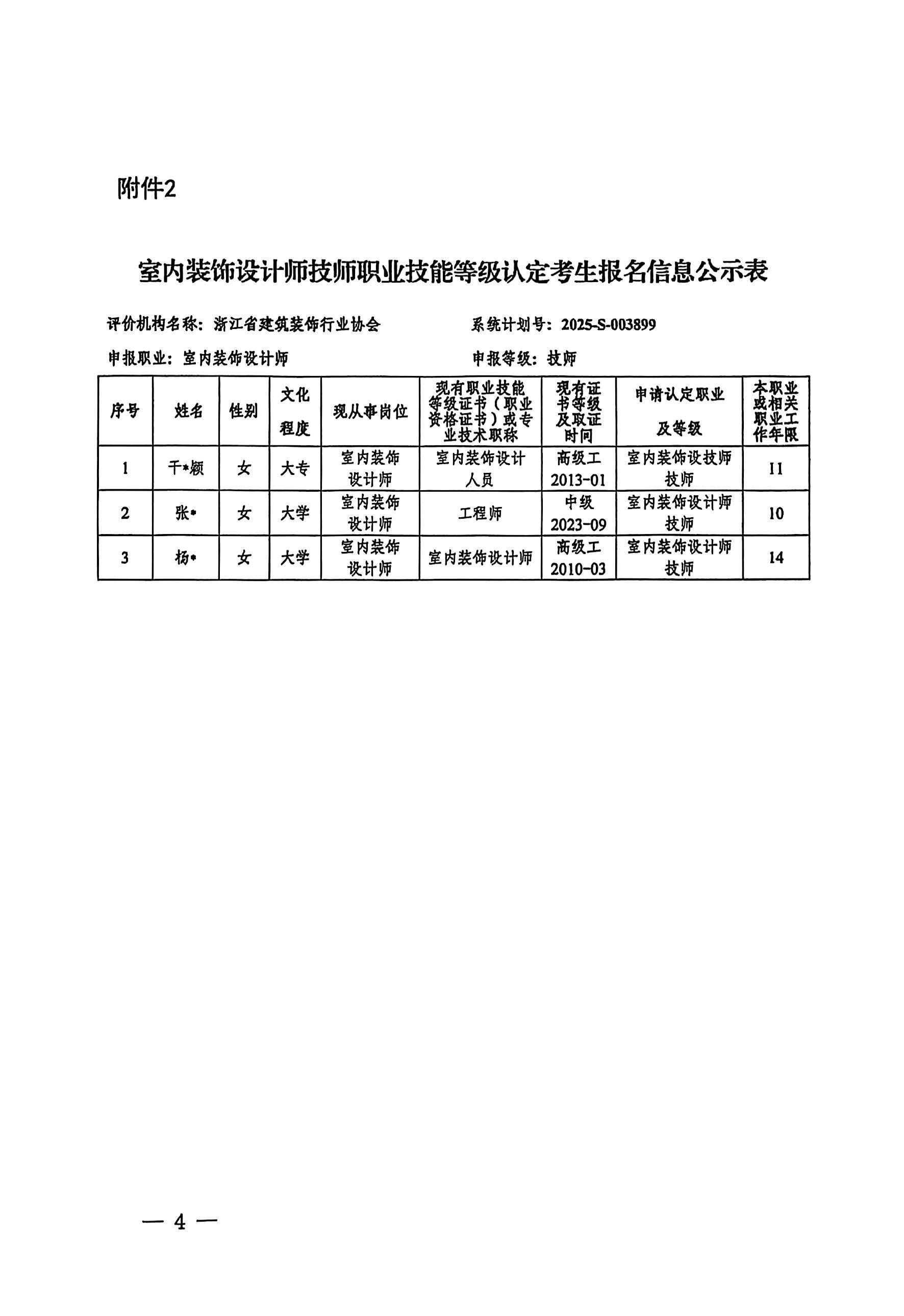 關(guān)于浙江省建筑裝飾行業(yè)協(xié)會(huì)6月份室內(nèi)裝飾設(shè)計(jì)師職業(yè)技能等級(jí)認(rèn)定考生報(bào)名信息的公示