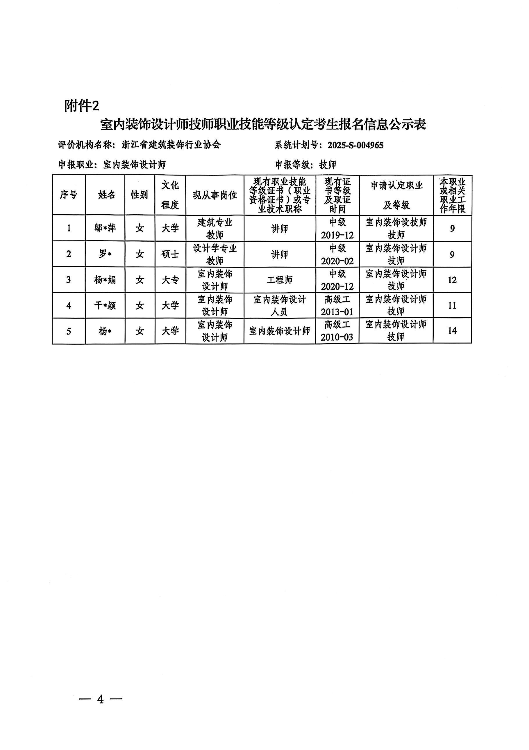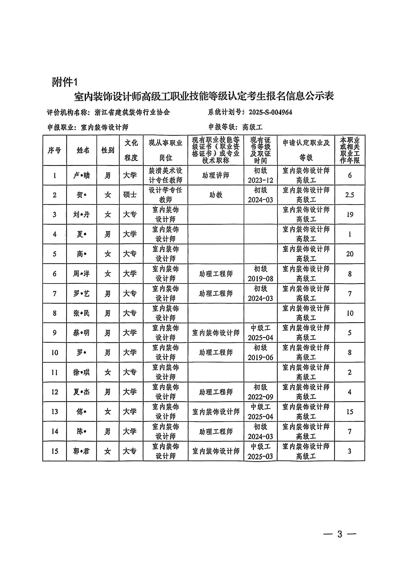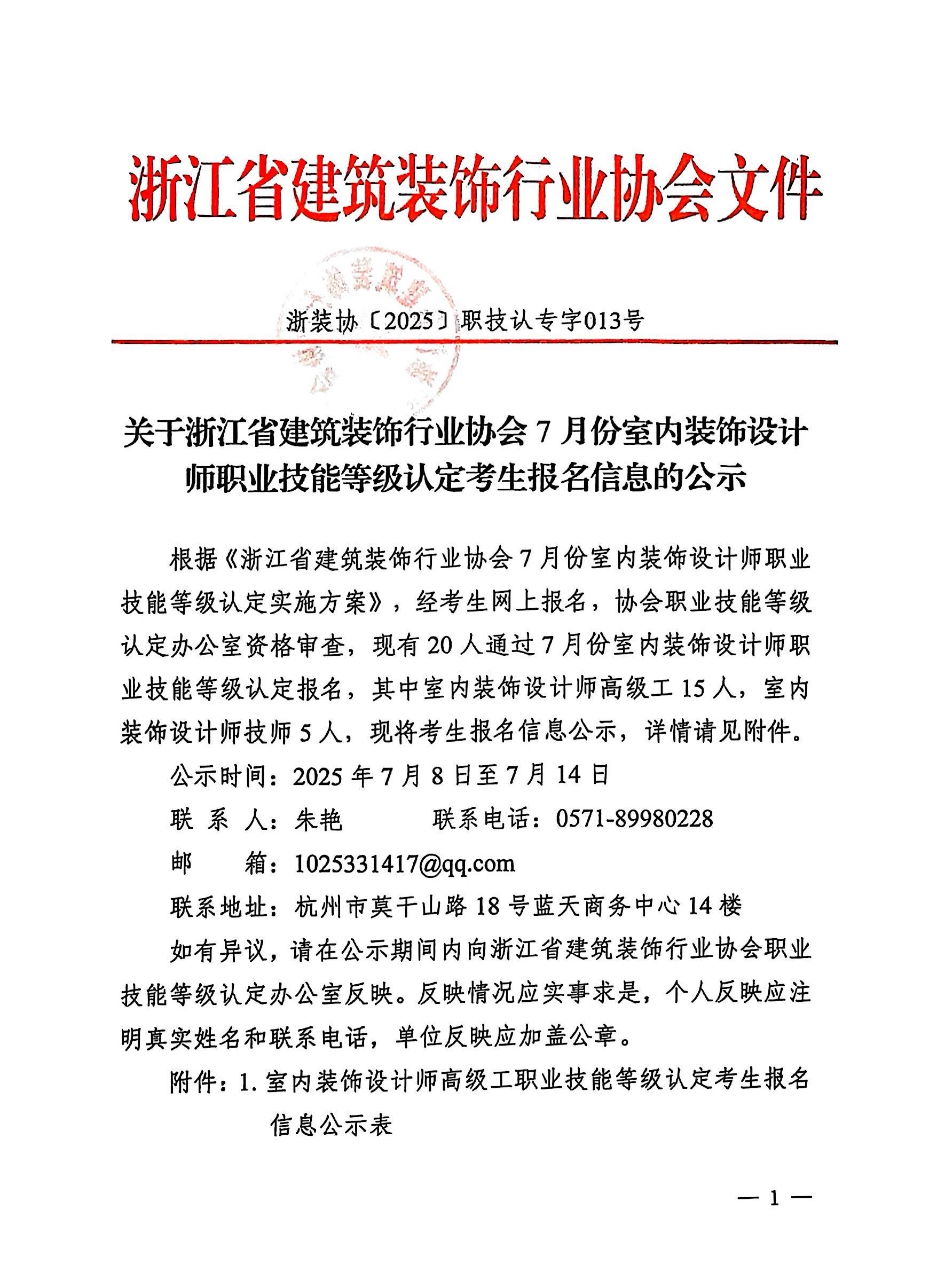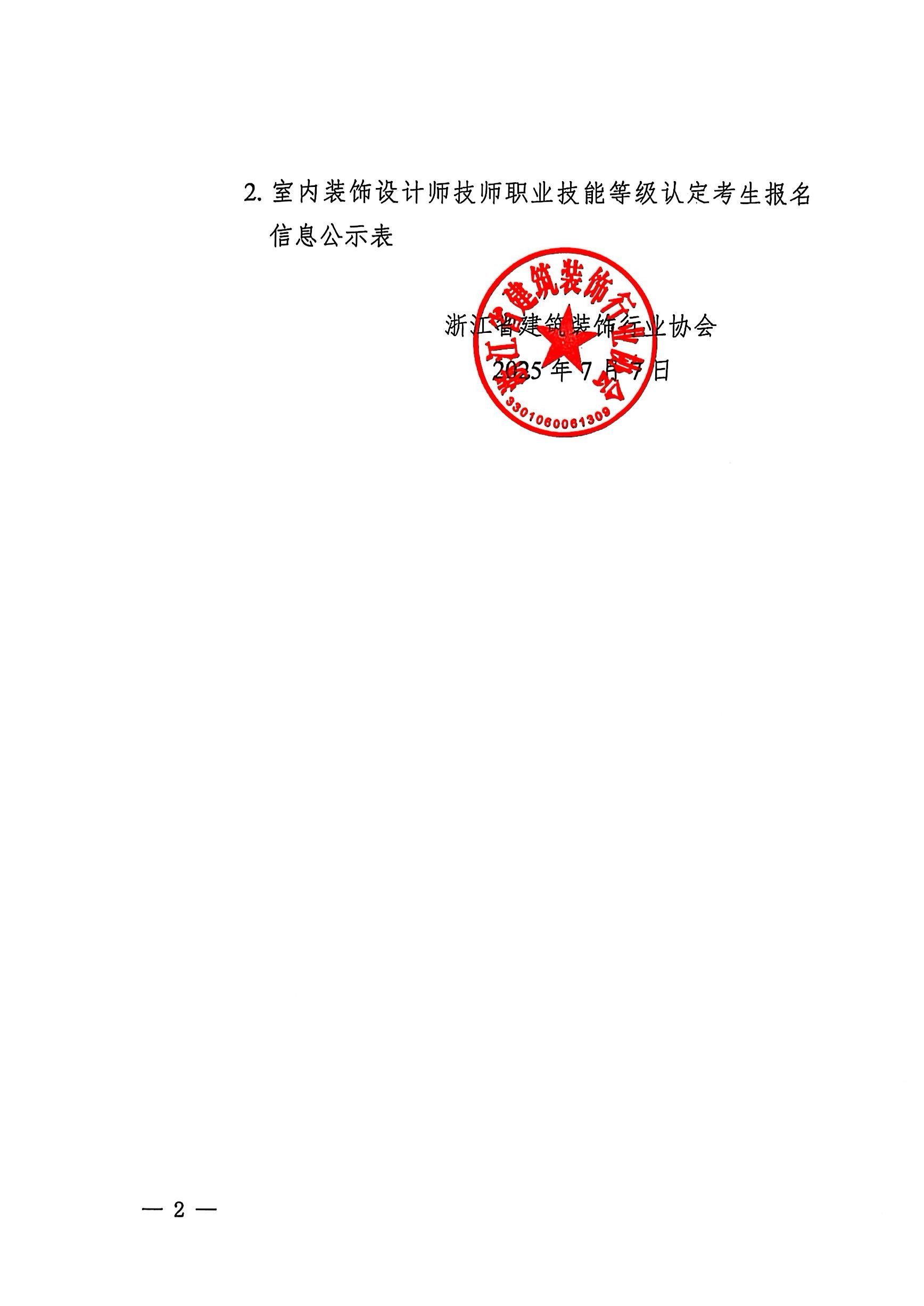 關(guān)于浙江省建筑裝飾行業(yè)協(xié)會(huì)7月份室內(nèi)裝飾設(shè)計(jì)師職業(yè)技能等級(jí)認(rèn)定考生報(bào)名信息的公示
