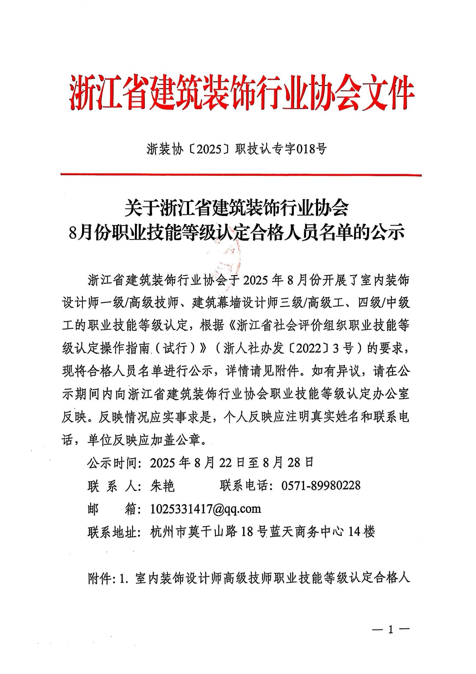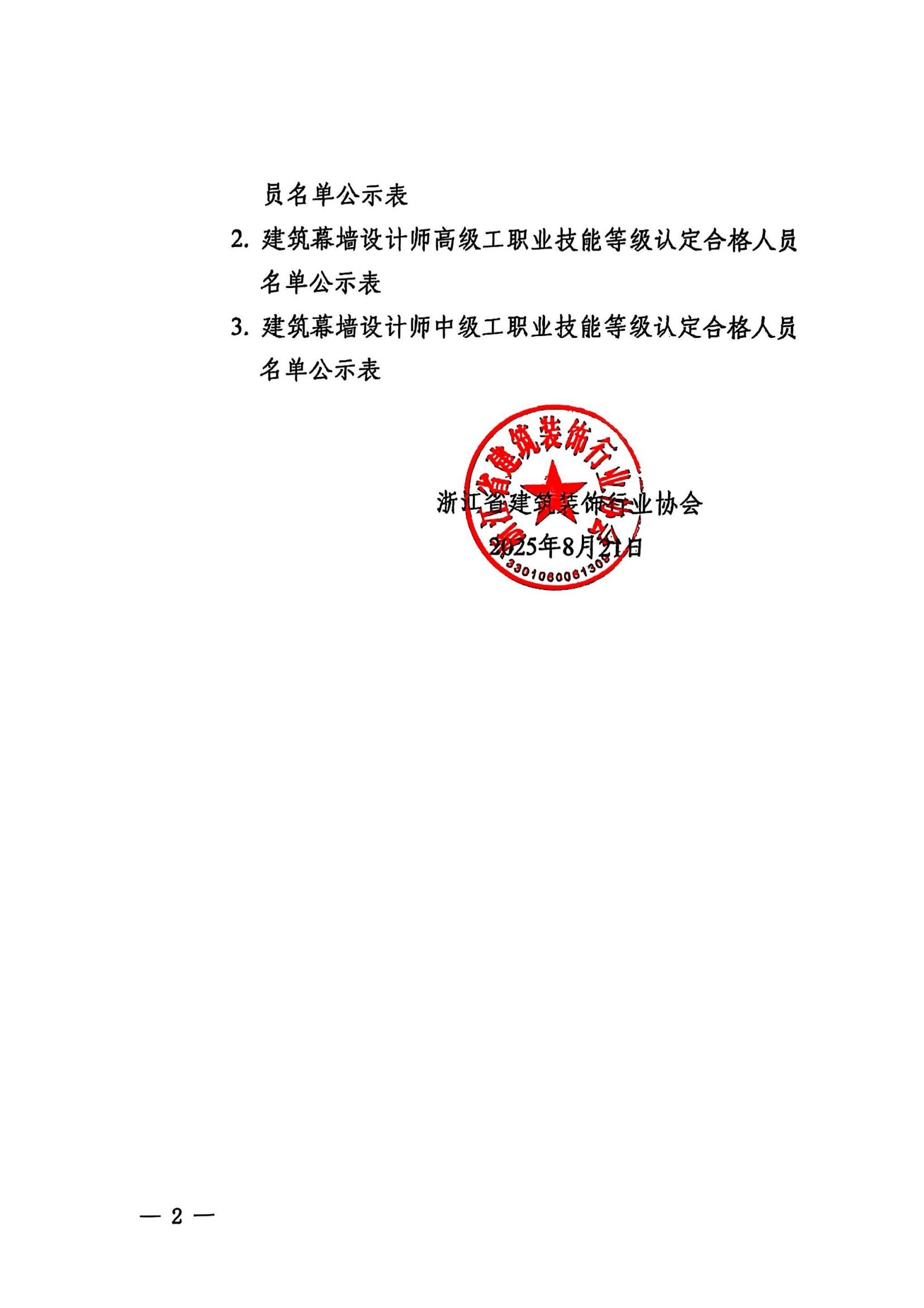 關(guān)于浙江省建筑裝飾行業(yè)協(xié)會8月份職業(yè)技能等級認(rèn)定考生成績的公示