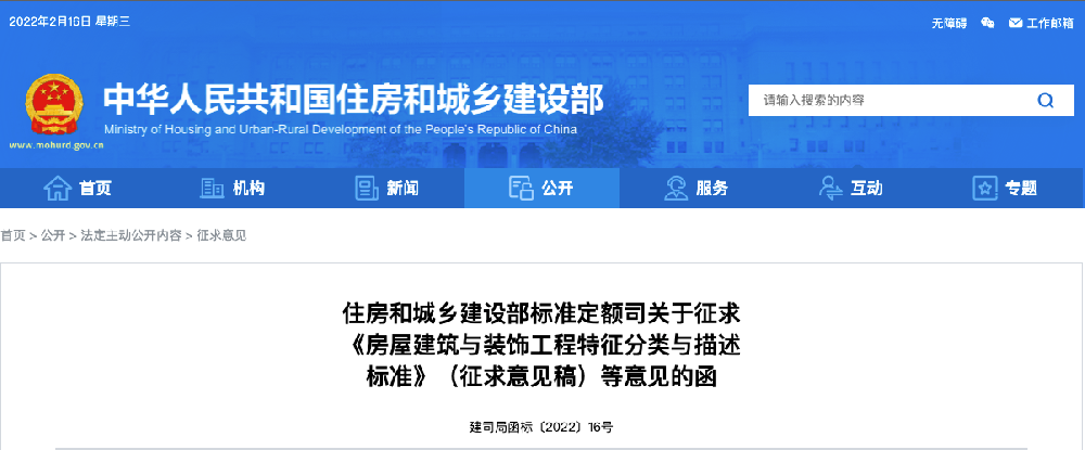 為加快工程造價信息標準化體系建設(shè),統(tǒng)一工程交易階段造價信息數(shù)據(jù)交換標準,我們組織起草了《房屋建筑與裝飾工程特征分類與描述標準》《通用安裝工程特征分類與描述標準》《市政工程特征分類與描述標準》《城市軌道交通工程特征分類與描述標準》等4本標準征求意見稿(電子版可登錄住房和城鄉(xiāng)建設(shè)部門戶網(wǎng)站征求意見欄目檢索下載),現(xiàn)送你們。請認真組織研究,提出修改意見,并于3月15日前將書面意見反饋我司造價管理處。