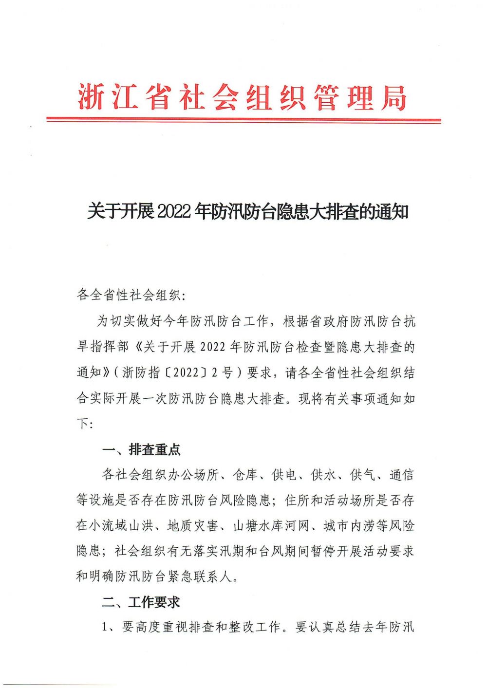 轉(zhuǎn)發(fā)關(guān)于開展2022年防汛防臺隱患大排查的通知
